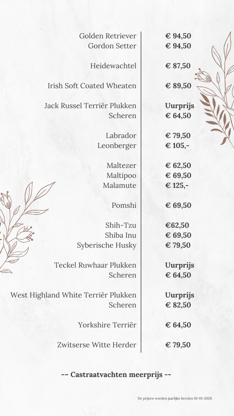 Prijslijst 2026