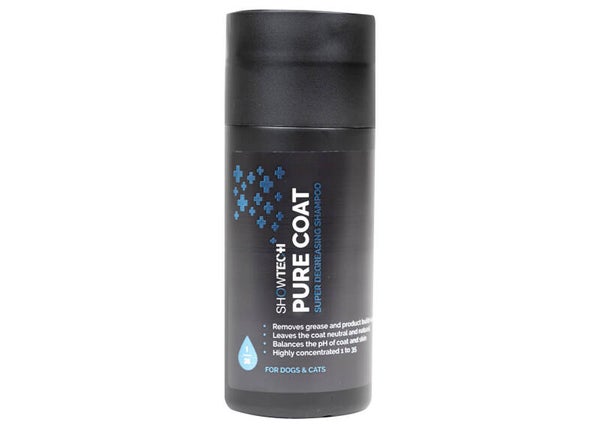 Net als mensen kunnen sommige honden een vette huid en vacht hebben. Om de vacht van je viervoeter te helpen ontvetten, diep te reinigen en meer volume te geven, heeft Show Tech+ de Pure Coat Degreasing Shampoo ontwikkeld.